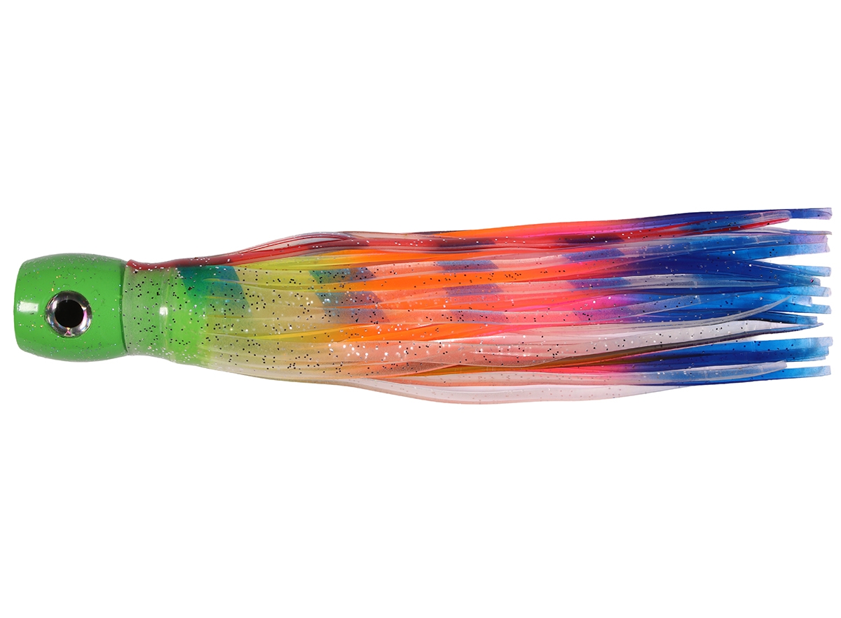 An ideal light tackle trolling lure to target tuna, mahi mahi, sailfish, juvenile marlin & other pelagic species. A cupped face grips the water to provide good traction & four jet ports add to the bubble trail. Skirted with two 165mm (6-5") skirts from our Octopus Lure Skirt range.