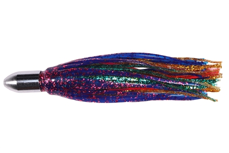 Small, budget priced, classic straight running tuna lure for trolling. Polished chrome plated brass head, fitted with high quality Yo-Zuri octopus style skirts. Troll in any position for school tuna or other small pelagic game fish. Lure length 130mm.