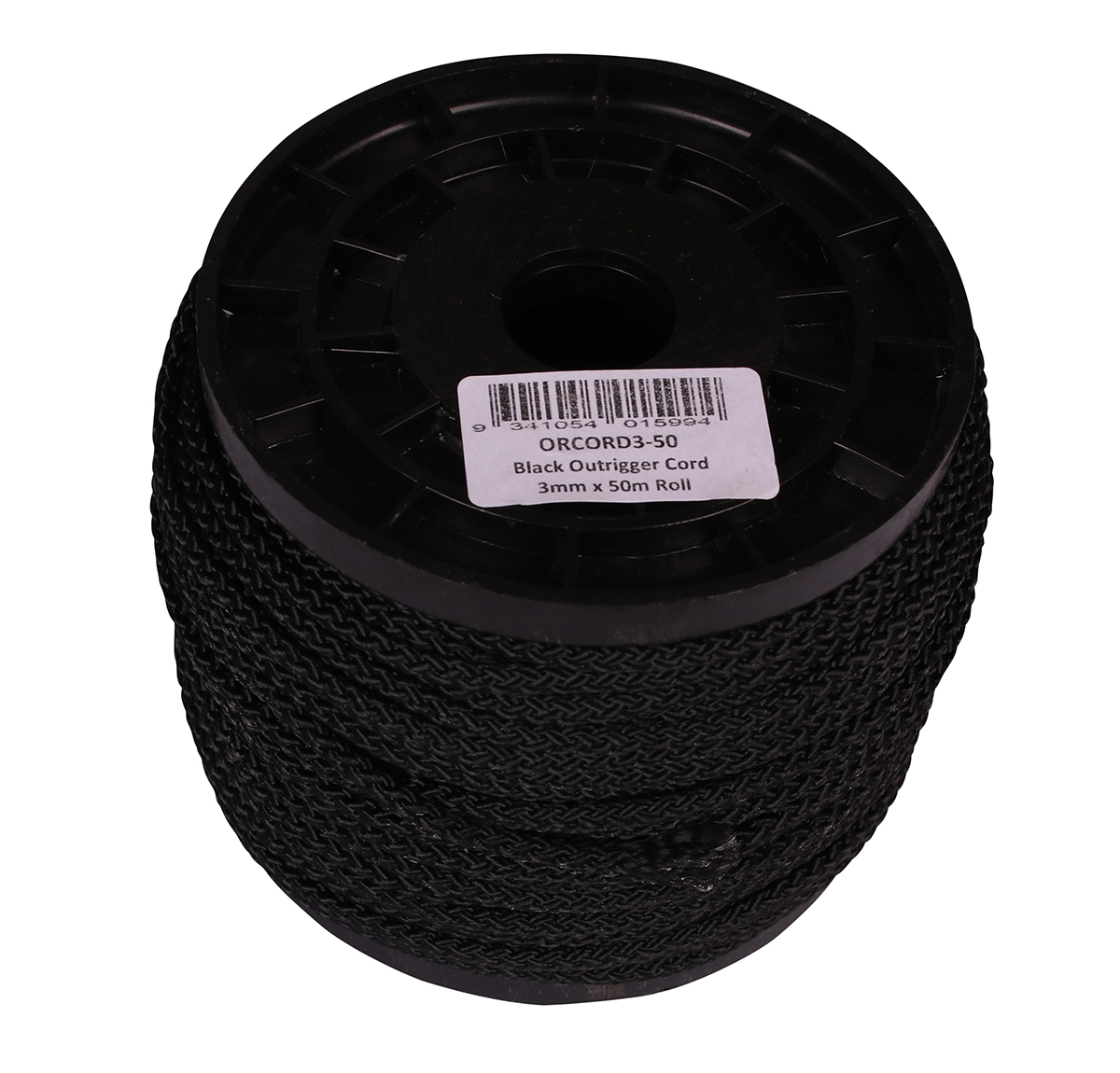 Polyester nylon rope braided cord suitable for rigging game fishing outrigger halyard lines, running teasers and/or fishing dredges. Colour Black. Diameter 3mm. Length 30m (32.7yds). SKU 180553