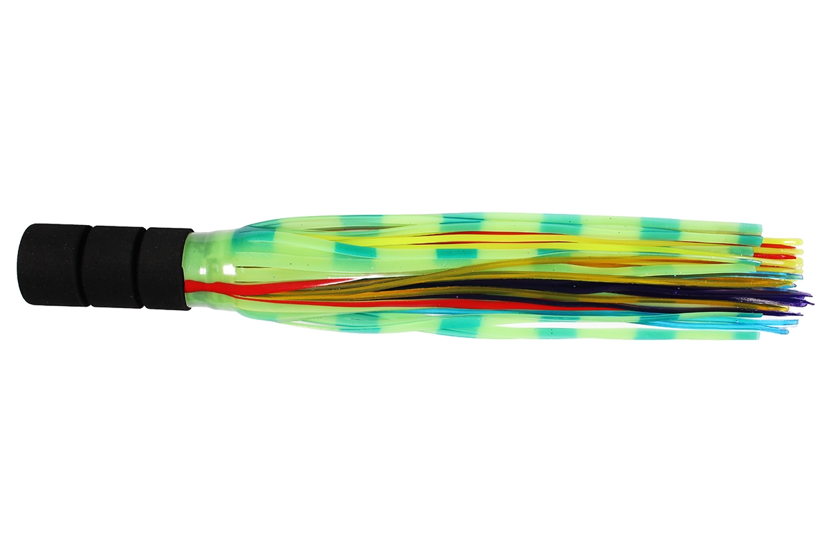 Handcrafted from EVA, the soft head fish teaser predator lure will create a big smoke trail when trolling & floats at rest. Use as a highly productive marlin or large tuna lure or add to your daisy chain. Length 370mm. N.B. Skirt colours may vary.