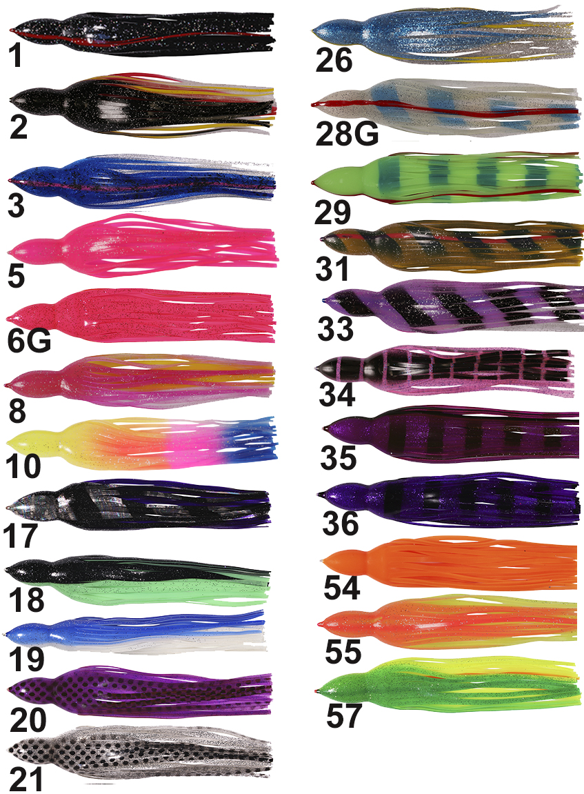 Image shown: skirt colour 36 Lure length 170mm (6-3/4") Head weight 41gm
